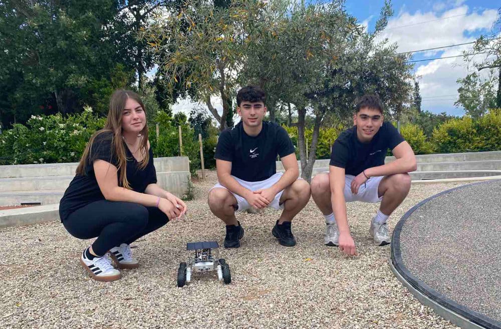 Students from Ellinogermaniki Agogi, Greece, with the rover they assembled in preparation for the first EXPLORE mission.
