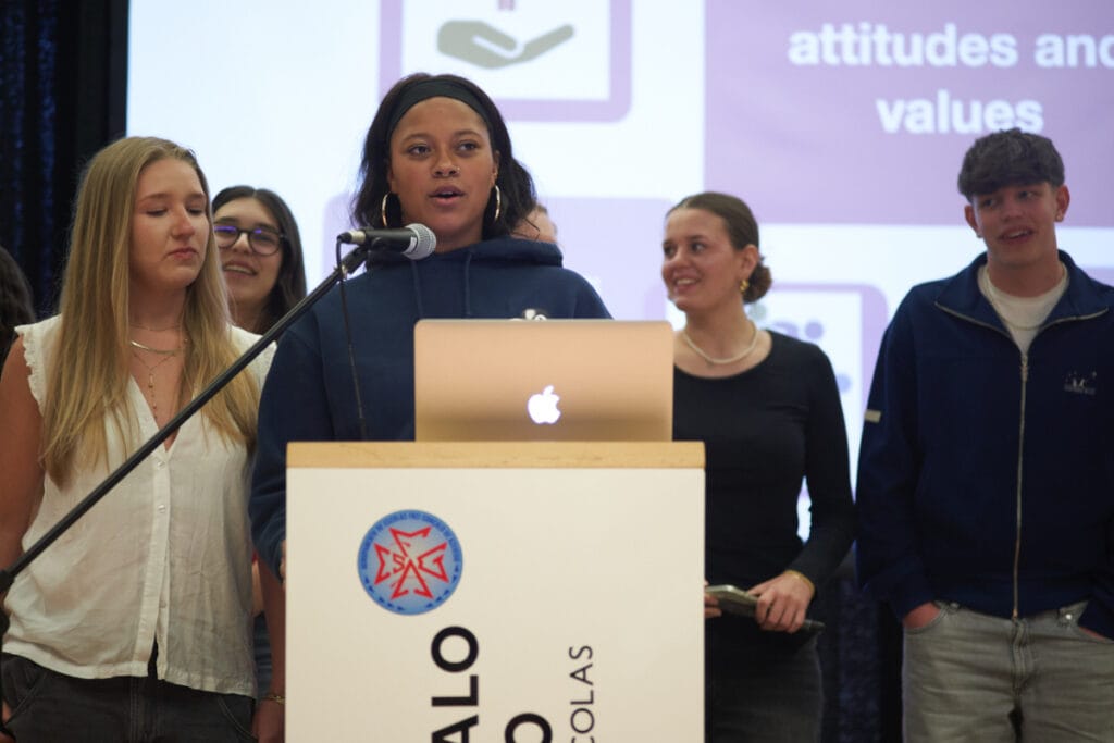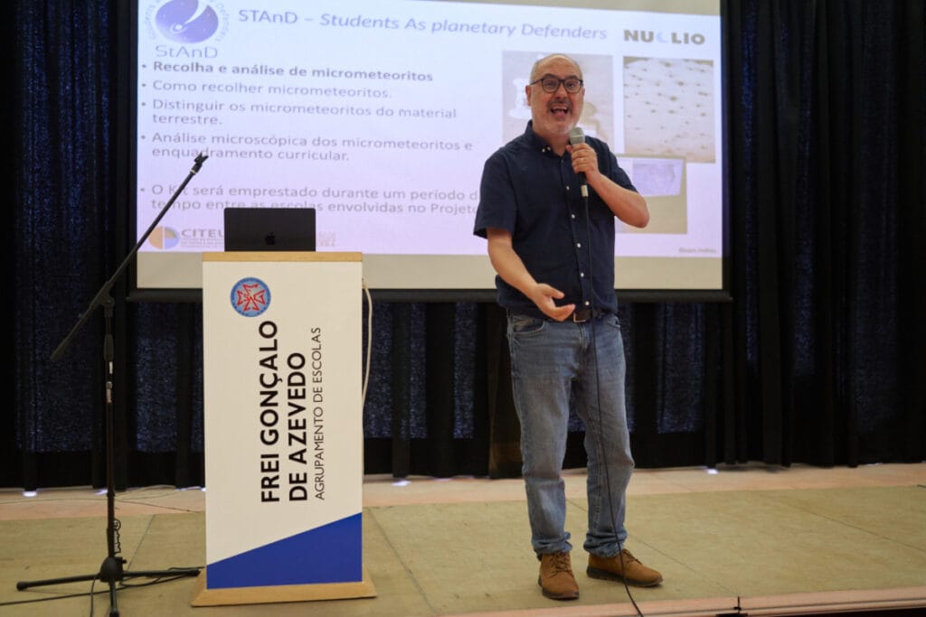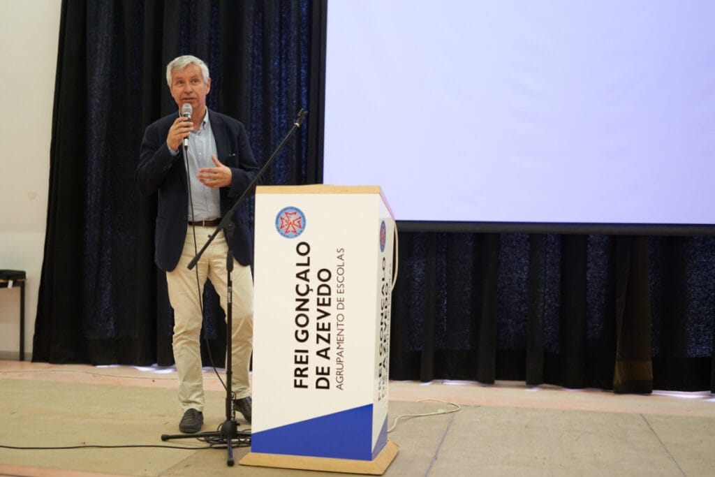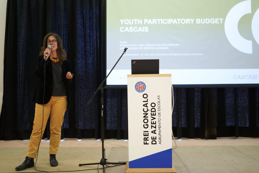Na segunda parte da conferência, o foco passou para exemplos práticos de aprendizagem-serviço nas escolas. Oradores da Direção-Geral da Educação e da Câmara Municipal de Cascais apresentaram percursos de implementação e iniciativas de orçamento participativo. Gustavo Rojas (NUCLIO) apresentou projetos com participação ativa dos estudantes, entre os quais o CliC-PoLiT, o IASC e o StAnD. Um momento particularmente significativo foi a apresentação das reflexões de alunos da MSL e da FGA, que ofereceram um poderoso testemunho do impacto do projeto. Seguiu-se a distribuição de certificados de participação.