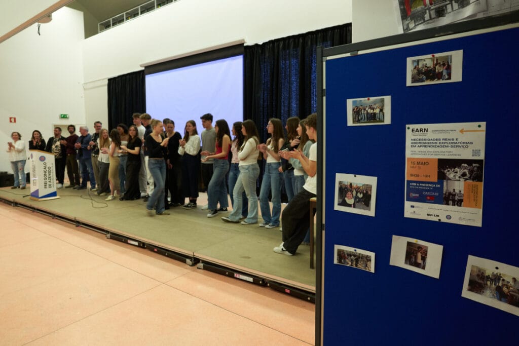 O ponto culminante do evento teve lugar a 15 de maio, com a Conferência Final, realizada em inglês no Auditório da Escola Frei Gonçalo de Azevedo. Organizada pelo NUCLIO, em estreita colaboração com os parceiros do projeto, a conferência contou com uma série de apresentações e discussões esclarecedoras. Após calorosa receção por parte dos representantes da FGA e do NUCLIO, foi apresentada aos participantes uma panorâmica dos objetivos e resultados alcançados pelo projeto EARN. O programa da manhã incluiu contributos de especialistas de sobre a formulação de políticas em aprendizagem-serviço, investigação participativa, ativismo climático e a interação entre a academia, as autoridades municipais e as políticas educativas.